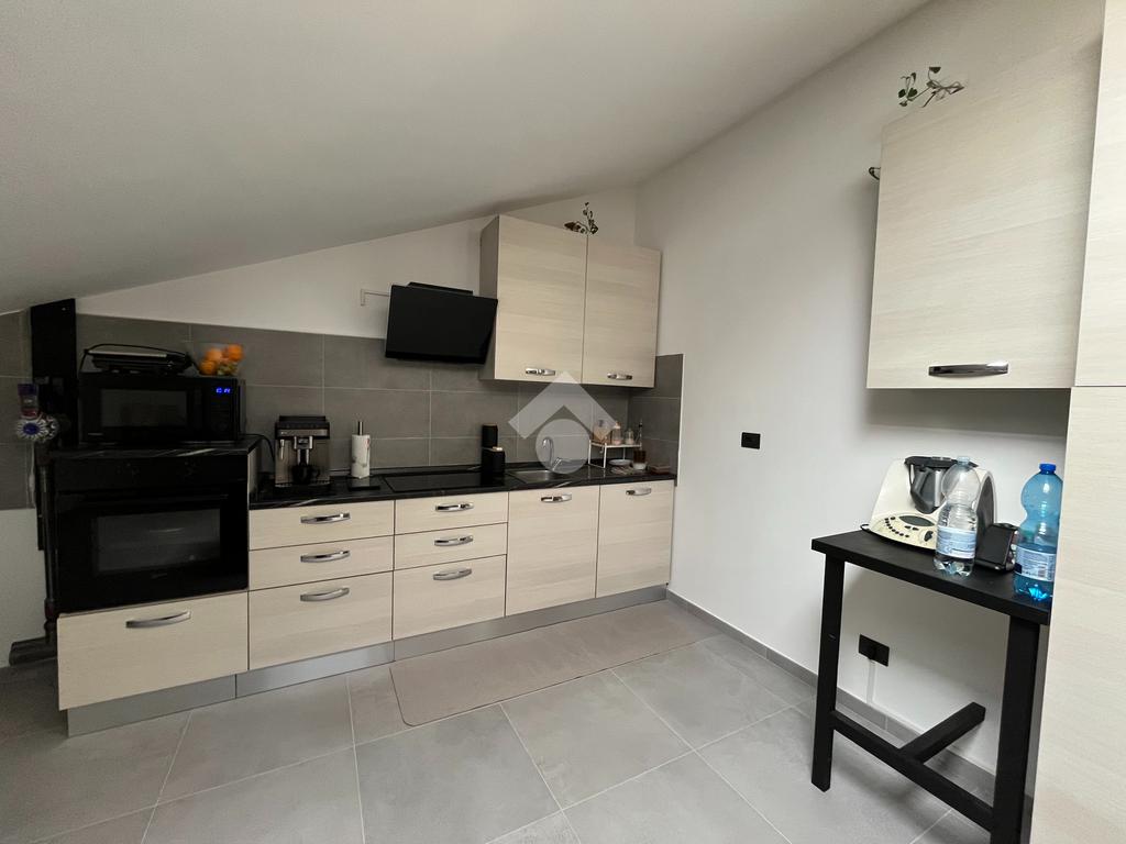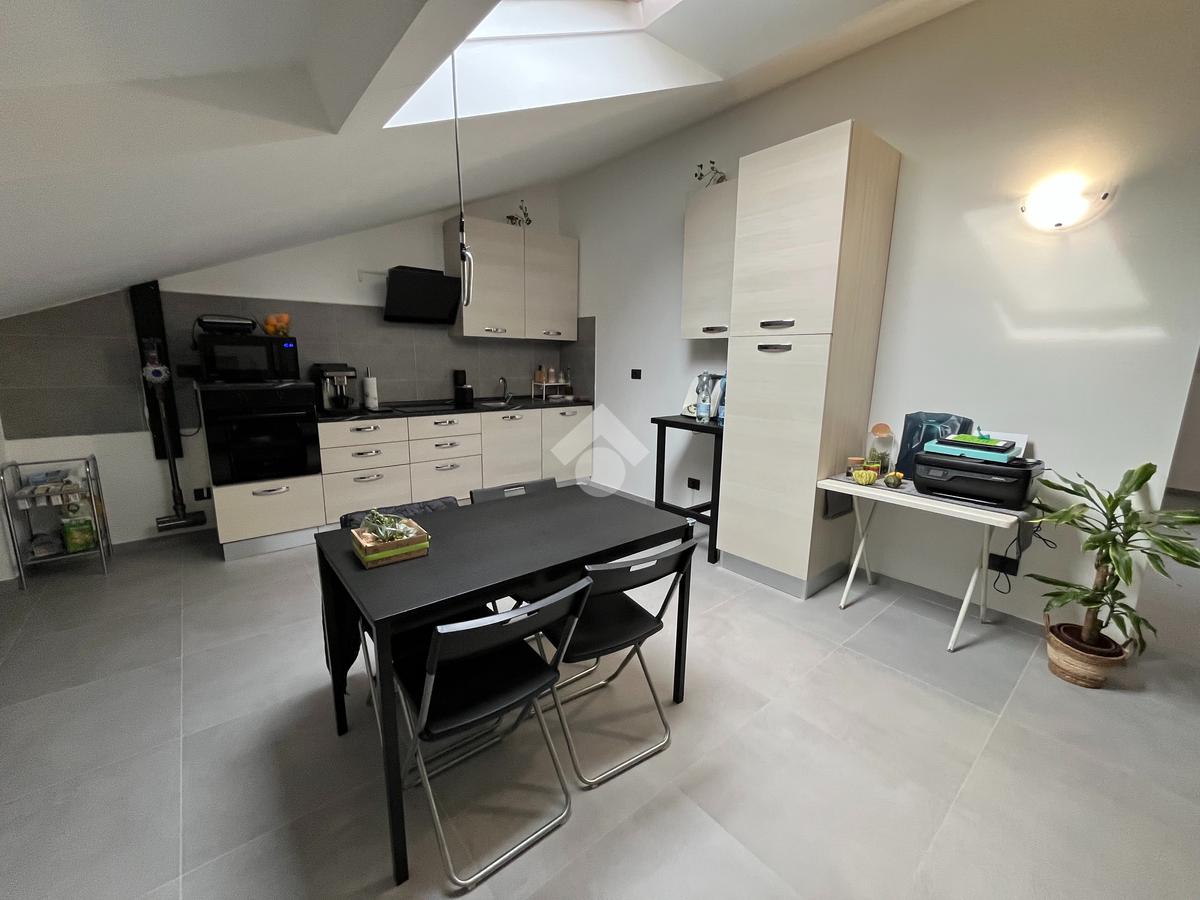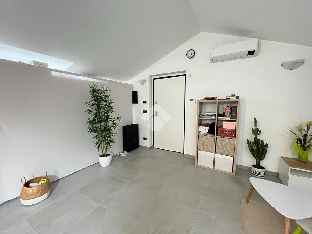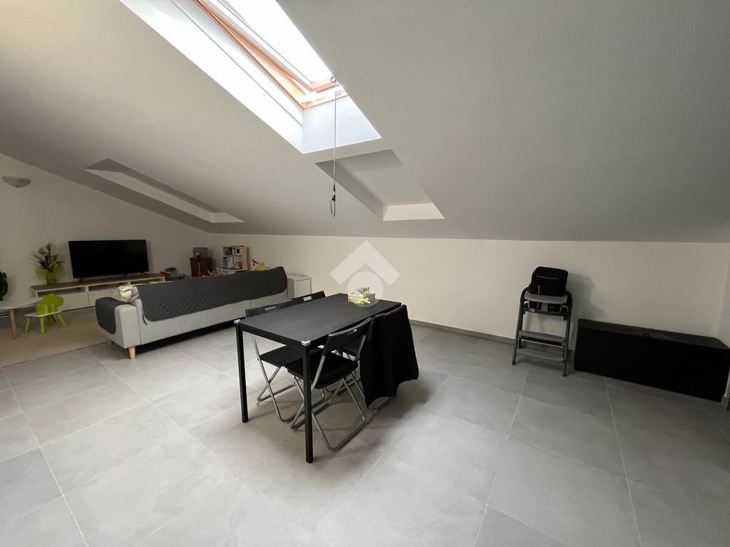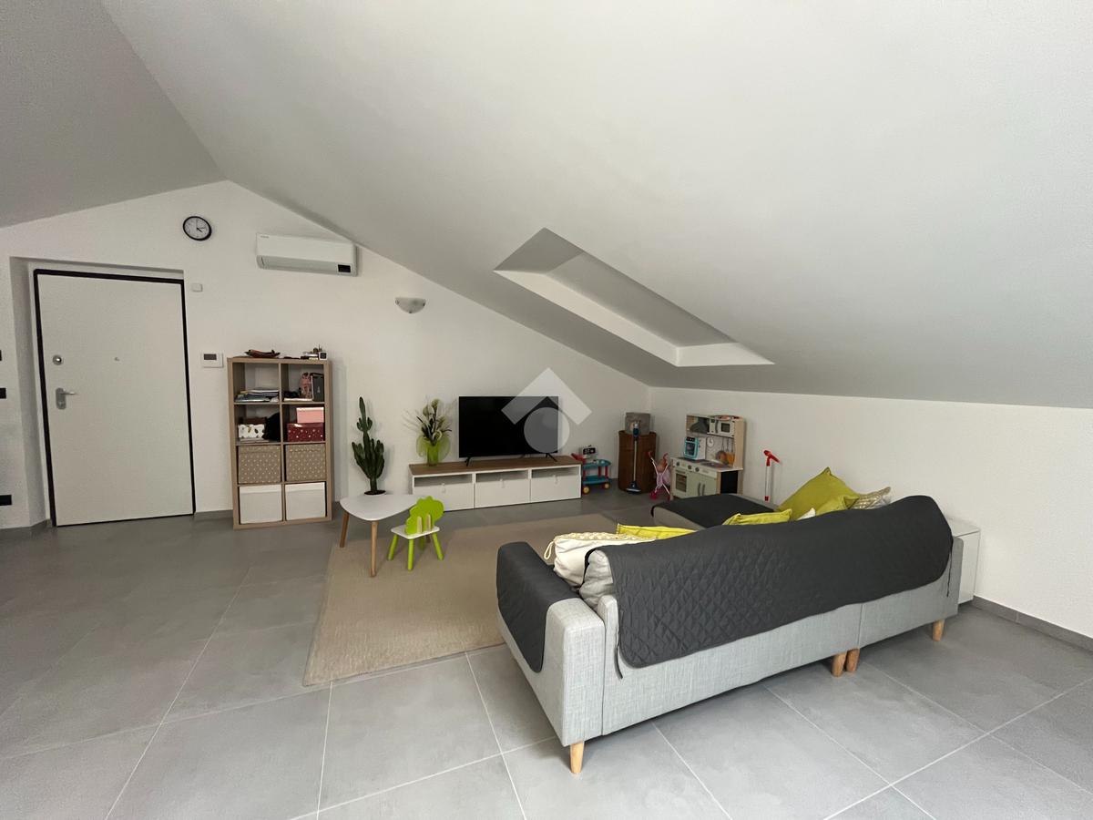 In prossimità della zona centrale, comodo alle scuole, al Comune, alla Chiesa e al centro commerciale 'Le Borgate', locale mansardato abitabile open space situato in piccolo contesto di recente costruzione di sole 5 famiglie.