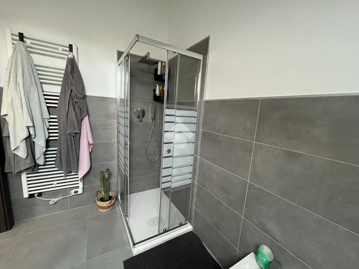 L'ingresso, tramite il portoncino blindato, è attualmente sulla zona giorno/notte open space, la quale può essere divisa. Il bagno ha la doccia.