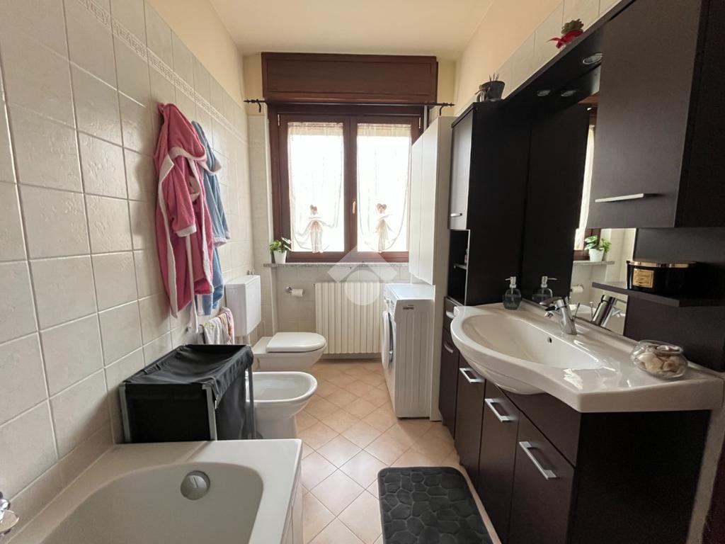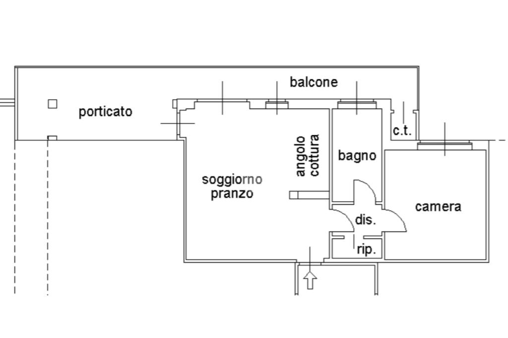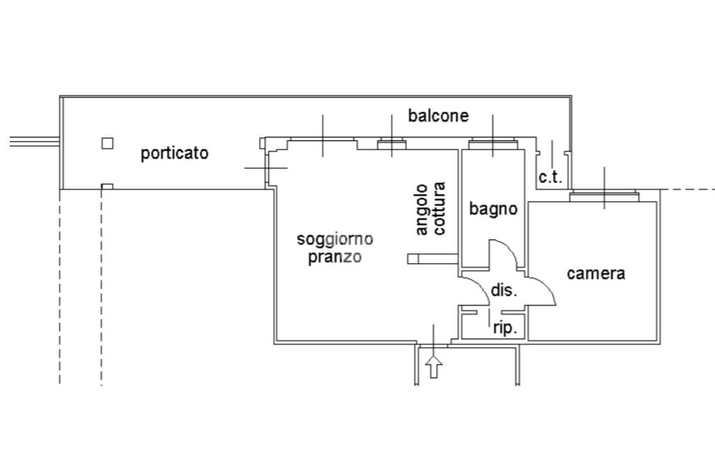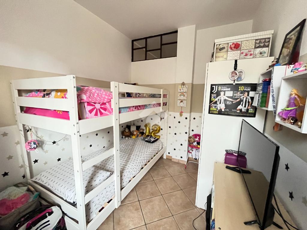 Il suo ingresso, tramite il portoncino blindato, è sulla zona giorno composta da soggiorno con cucina a vista. In questo ambiente, è stata ricavata una piccola stanza di 7 mq adibita a studio. Sempre al piano, il bagno con vasca, il ripostiglio e la camera da letto matrimoniale.