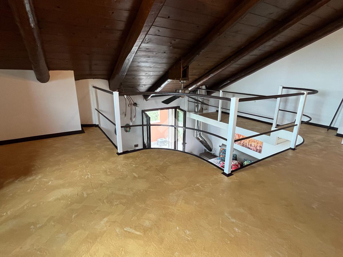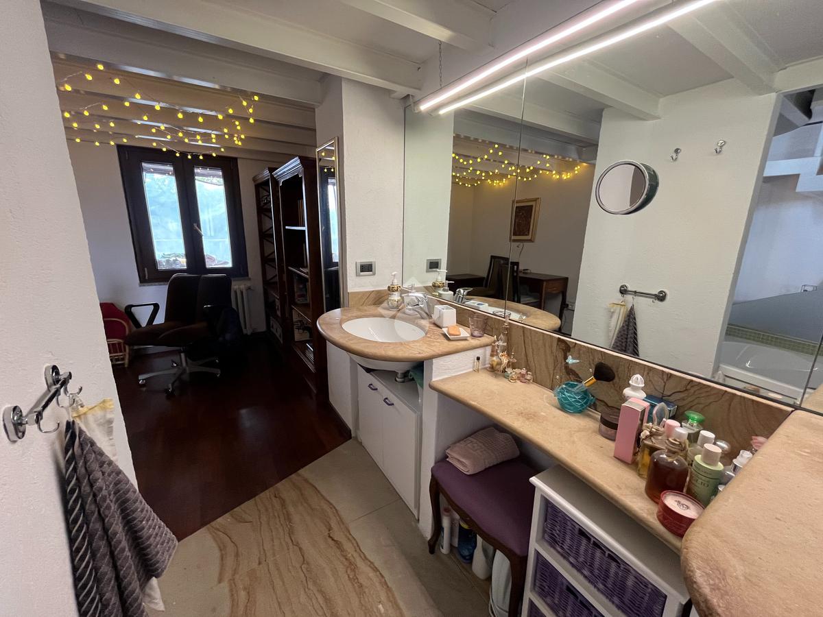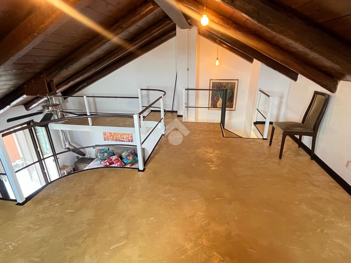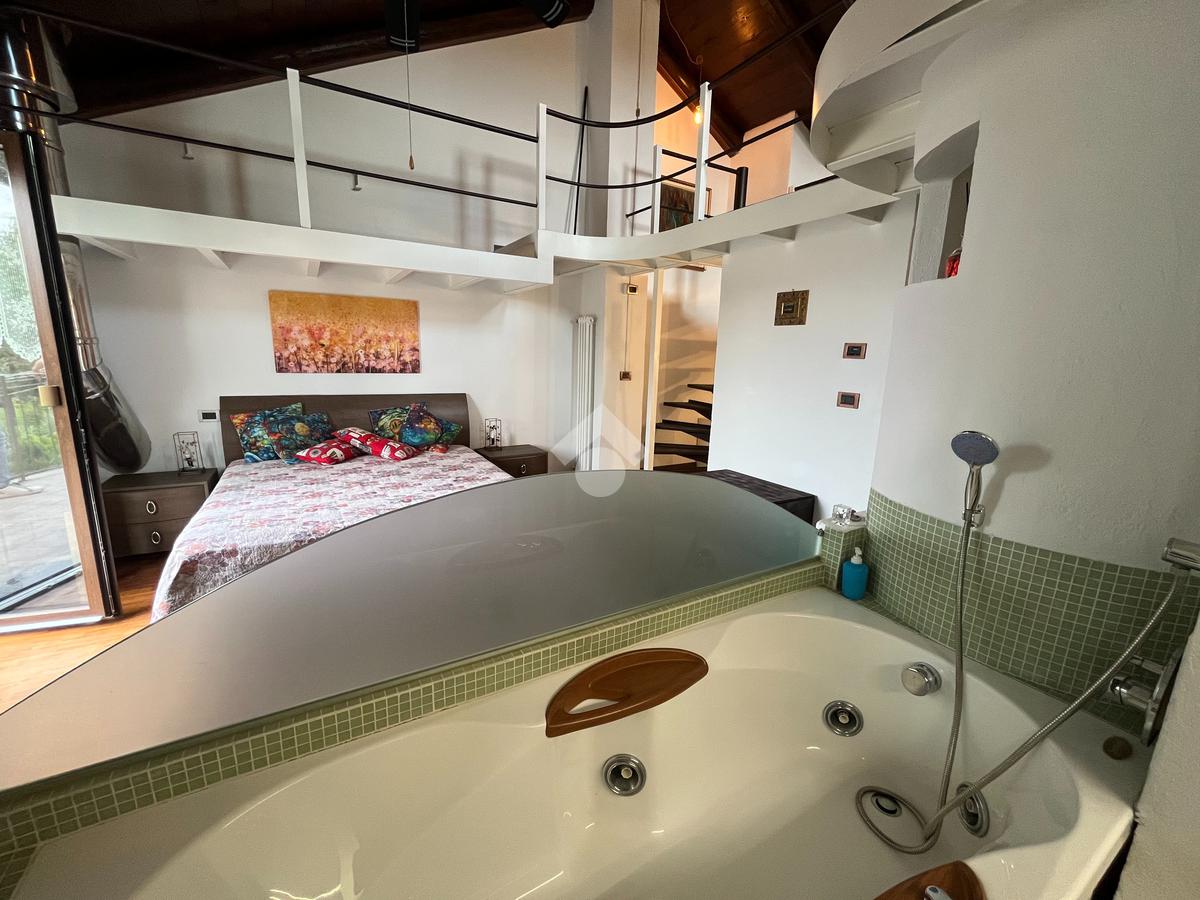 L'ingresso, tramite portoncino blindato nuovo, è sul disimpegno da cui si accede al cucinotto abitabile con finestra. Il soggiorno è doppio, luminoso, con volta a mattoni a vista, provvisto di camino a legna, e affaccio sul giardino. Sempre nello stesso piano troviamo il bagno di servizio e uno studio. Tramite scala interna, rifinita con pedate in legno, si accede al piano primo composto da camera da letto matrimoniale, che affaccia sul balcone , disimpegno e dal secondo bagno, con vasca idromassaggio e doccia. Proseguendo con la stessa scala, si accede al secondo piano, dove è stato realizzato un soppalco a vista che può essere adibito a seconda camera.