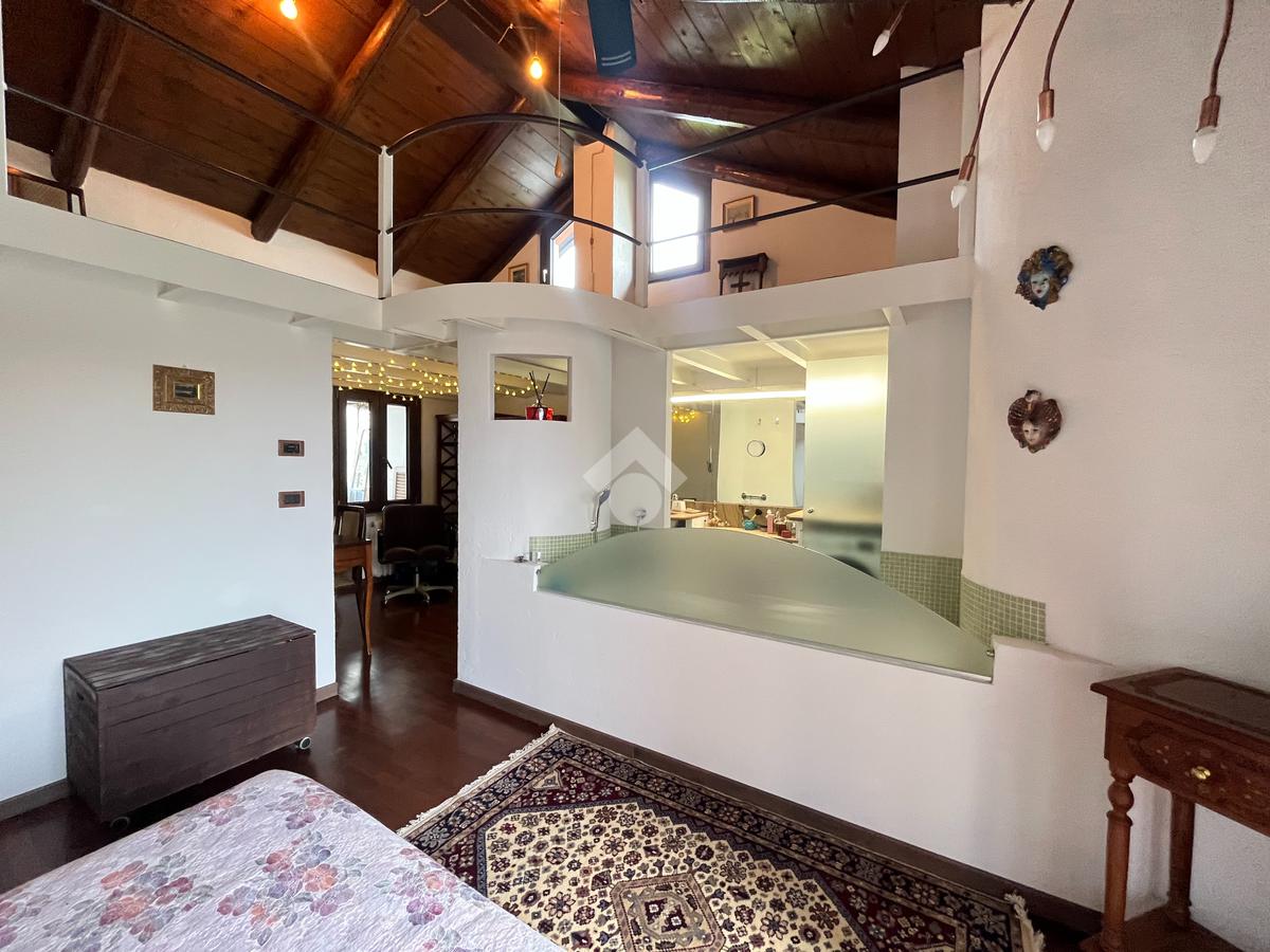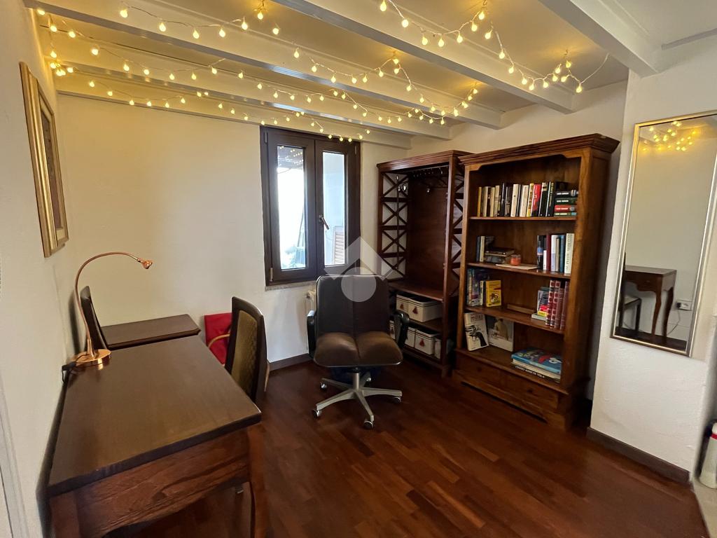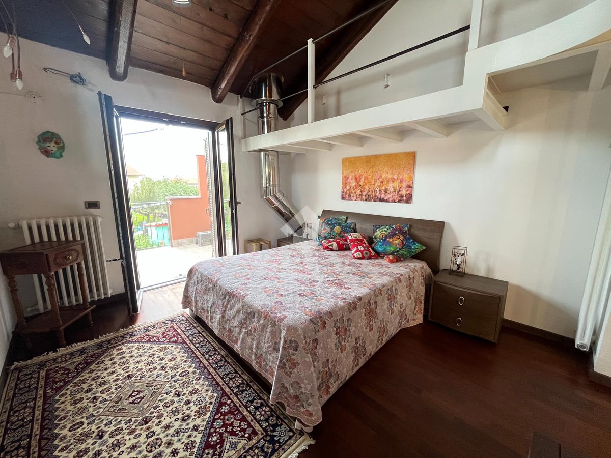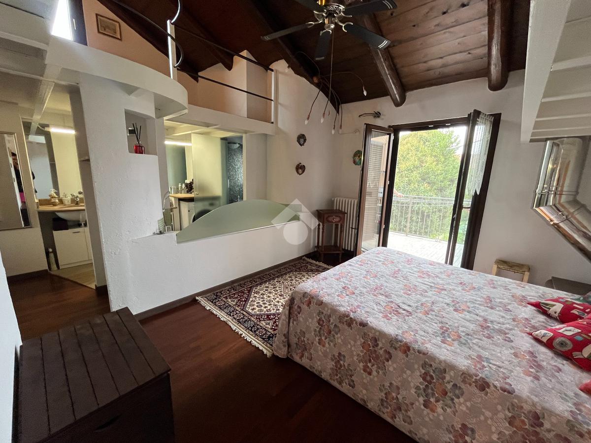 L'ingresso, tramite portoncino blindato nuovo, è sul disimpegno da cui si accede al cucinotto abitabile con finestra. Il soggiorno è doppio, luminoso, con volta a mattoni a vista, provvisto di camino a legna, e affaccio sul giardino. Sempre nello stesso piano troviamo il bagno di servizio e uno studio. Tramite scala interna, rifinita con pedate in legno, si accede al piano primo composto da camera da letto matrimoniale, che affaccia sul balcone , disimpegno e dal secondo bagno, con vasca idromassaggio e doccia. Proseguendo con la stessa scala, si accede al secondo piano, dove è stato realizzato un soppalco a vista che può essere adibito a seconda camera.