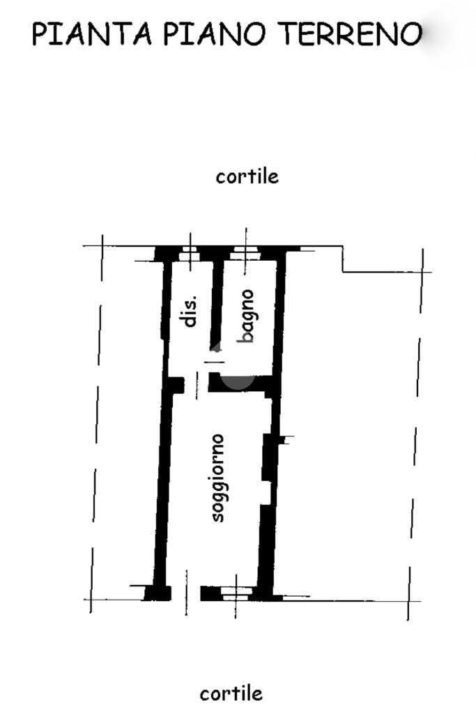 La prima unità abitativa è composta da un monolocale: disimpegno, bagno con doccia e cantina.