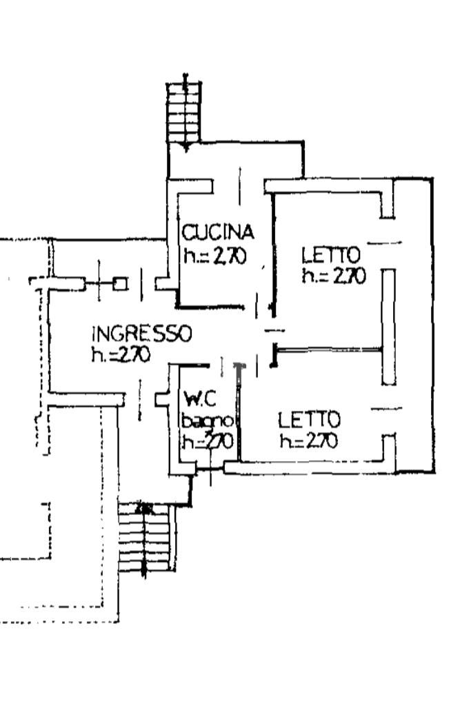 La parte abitativa è composta da ingresso living su soggiorno, disimpegno, cucina abitabile, due camere da letto matrimoniali e bagno con doccia.