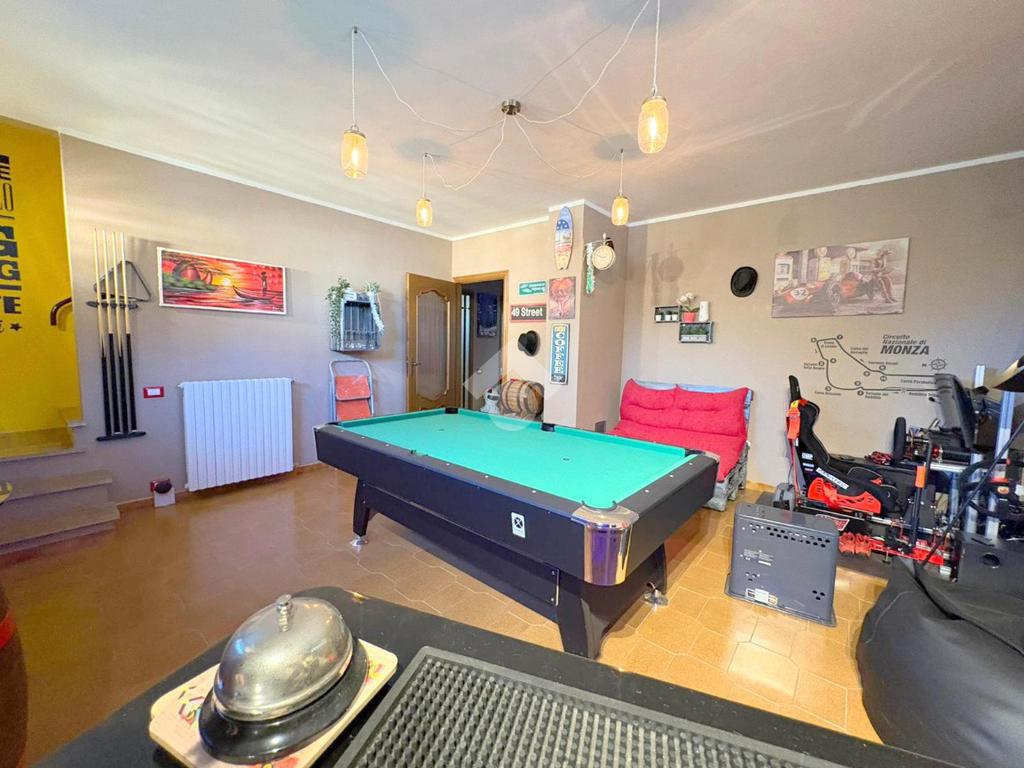 Il piano seminterrato è composto da box auto doppio, vano caldaia, cantina, palestra/vano, taverna con stufa a pellet e locale lavanderia.
