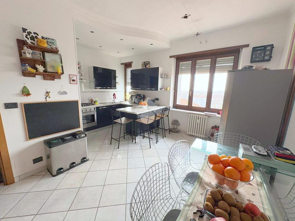 In San Maurizio Canavese, a pochi passi dal centro del paese, dalla stazione ferroviaria e dalla piazza del mercato, appartamento quadrilocale in ottime condizioni interne sito al 5° piano con ascensore.