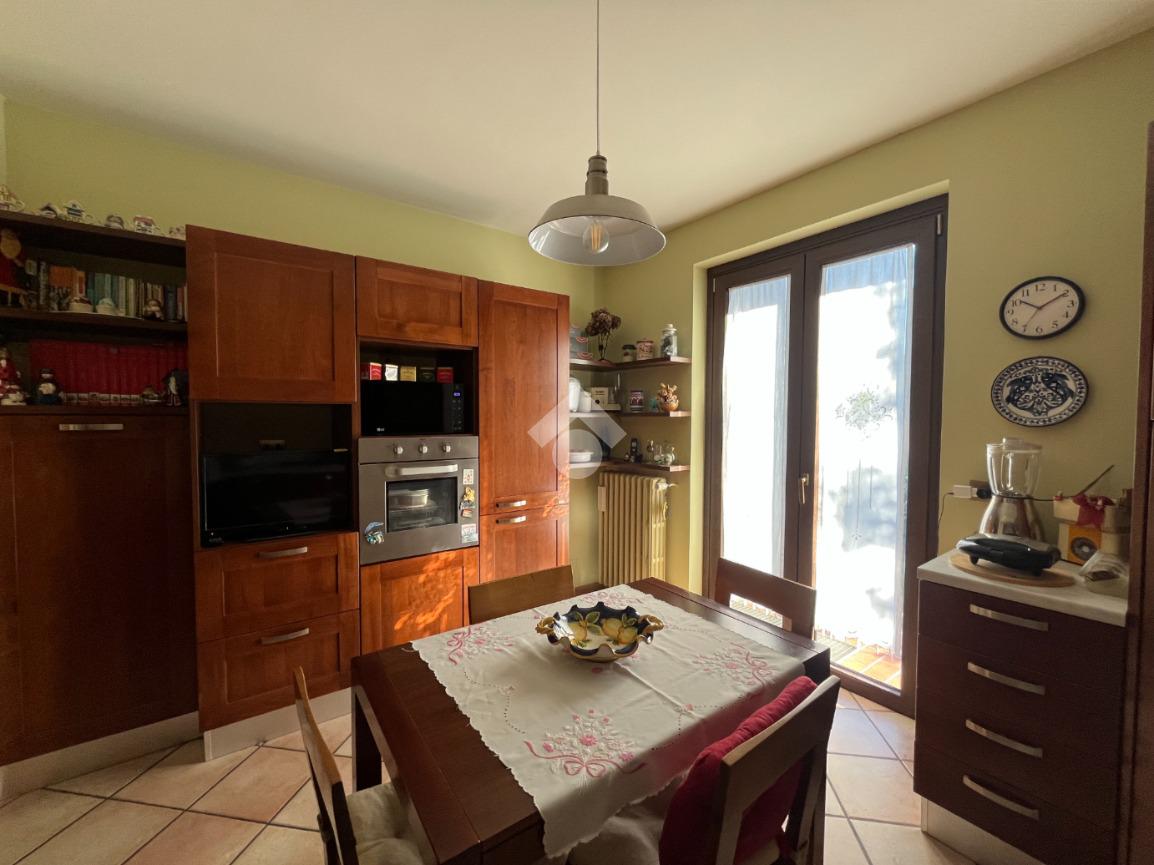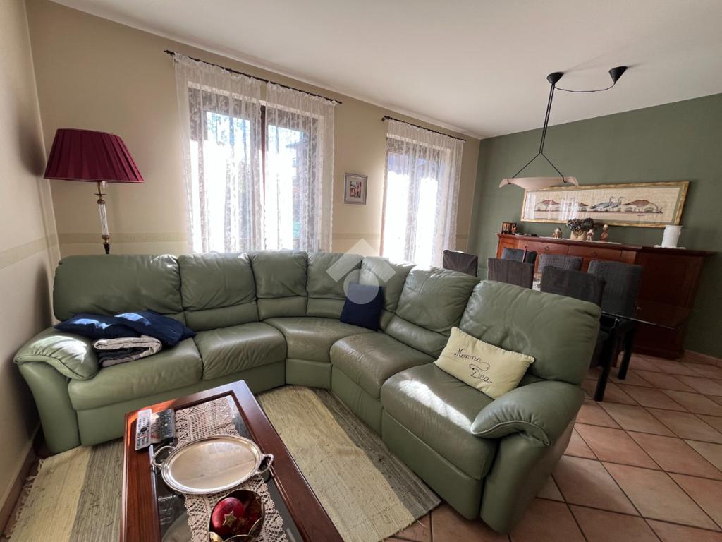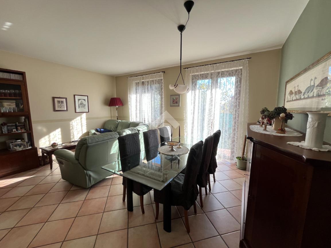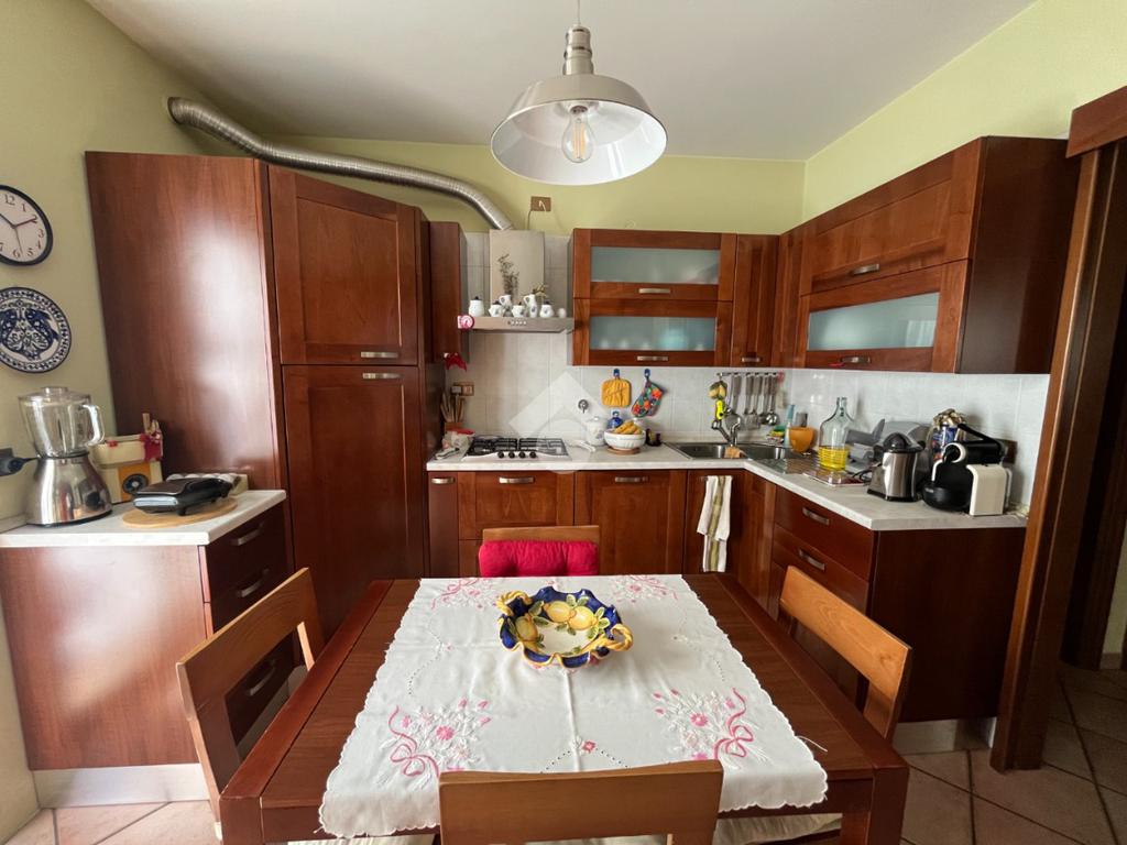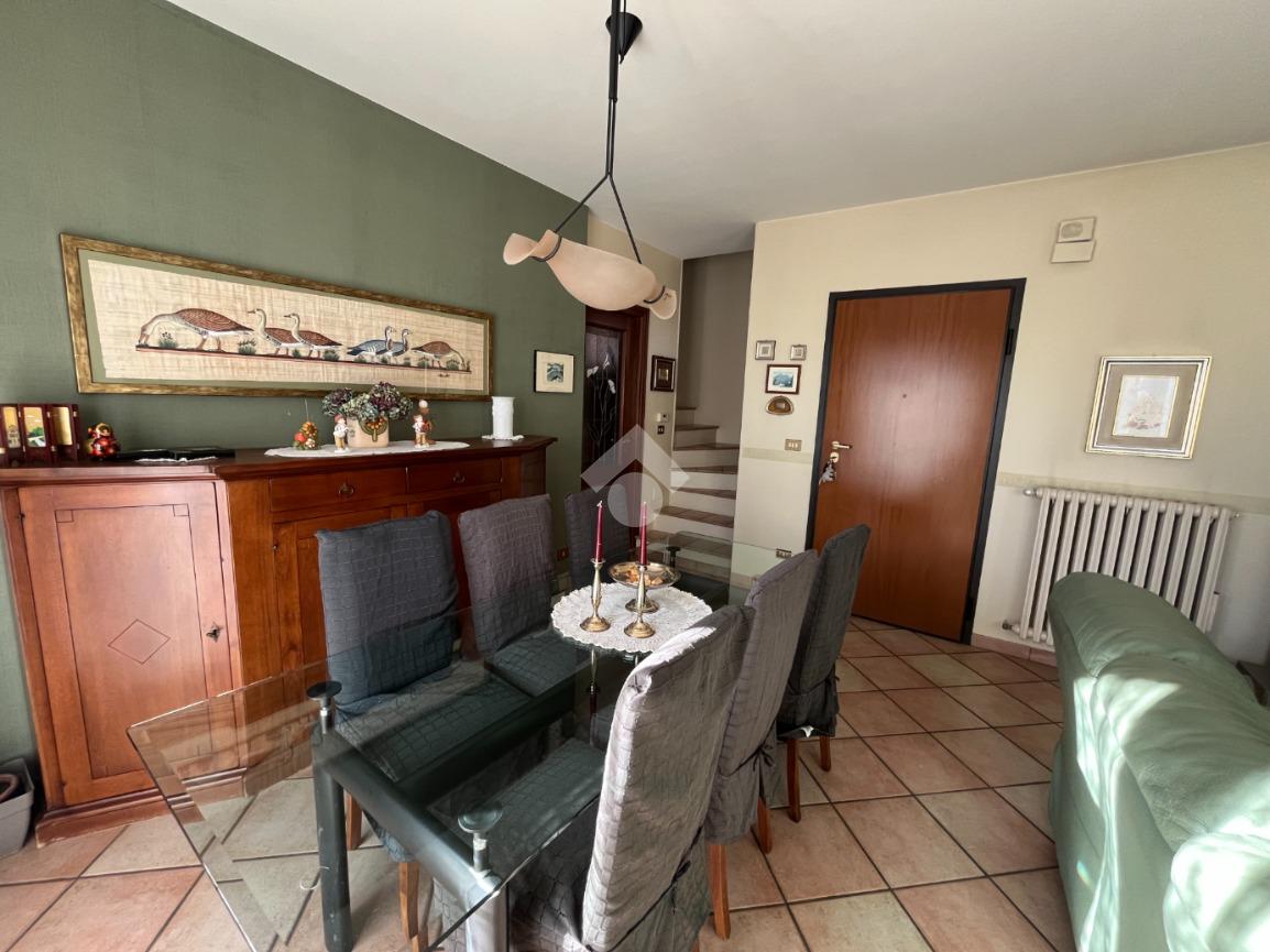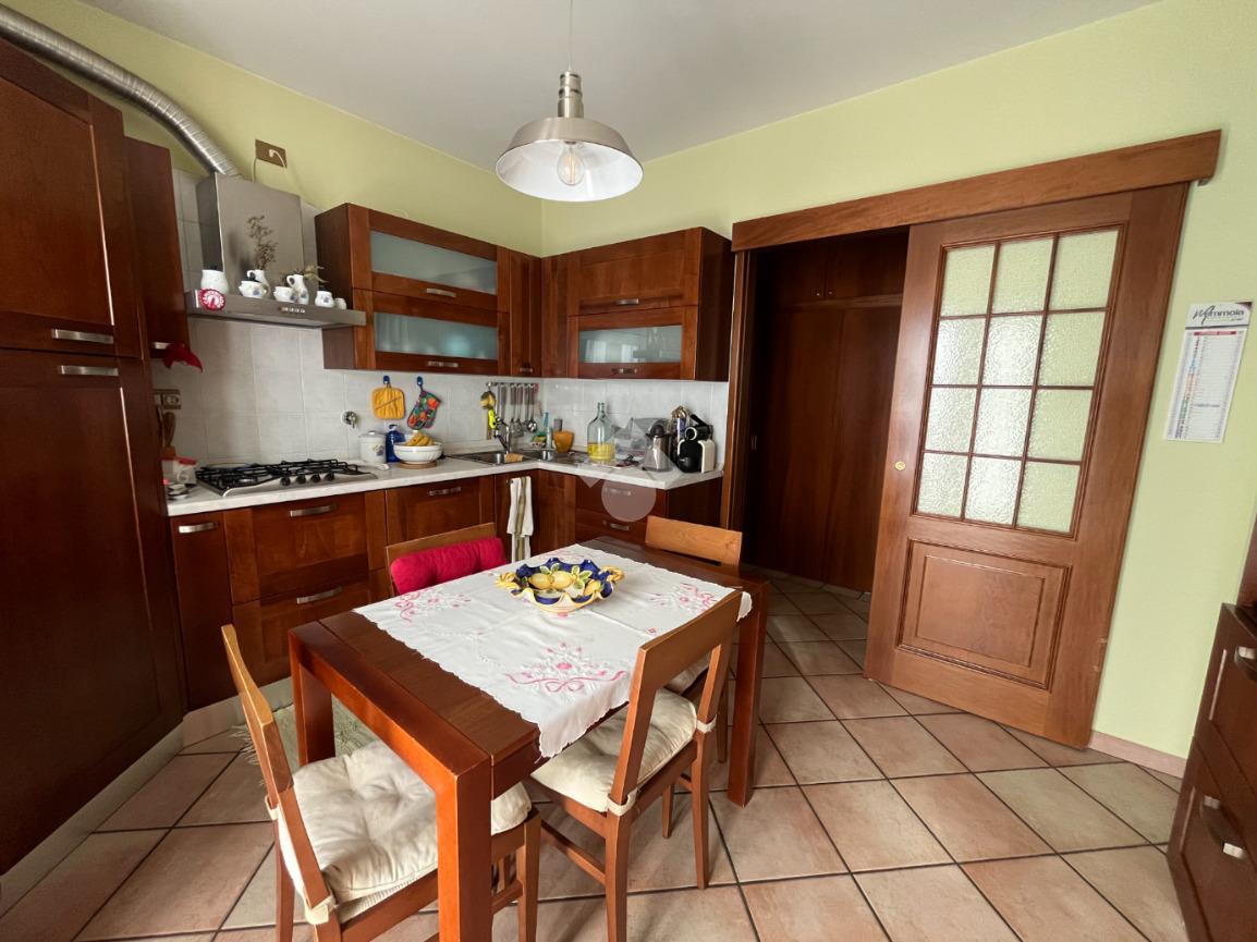 L'ingresso, tramite il portoncino blindato, è sul soggiorno adibito anche a sala da pranzo. Sempre al piano terra, sono presenti la cucina abitabile e il bagno di servizio.