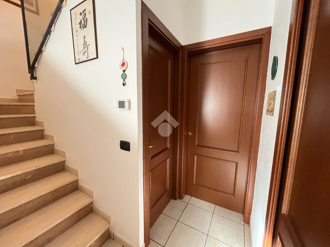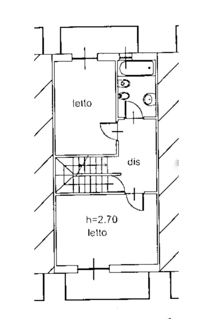Tramite scala interna, fuori capitolato, si accede al primo piano composto dal bagno con doccia e vasca, dalla camera matrimoniale con balcone e dalla seconda camera da letto.